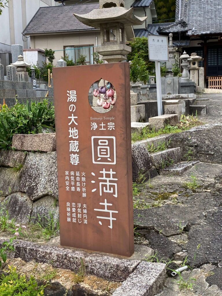 Traditionally founded in 812, Enmanji is famed for its 3.67-meter “Hot Spring Great Jizō.” The colorful “musubi-dama” love charms, inspired by Dōgo’s hot-spring symbol, are popular and make a photogenic display, drawing visitors praying for romance and good matches.